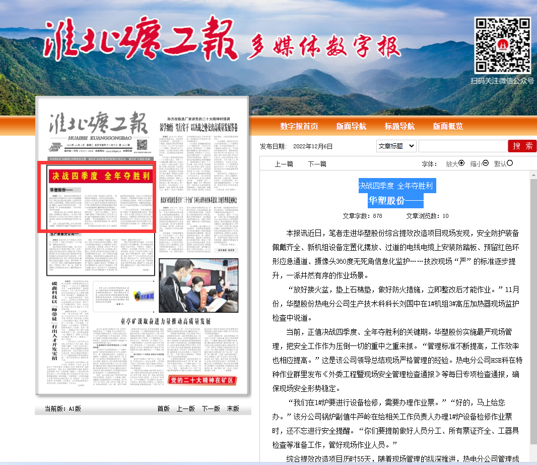 《淮北矿工报》12月6日头版头条:决战四季度 全年夺胜利