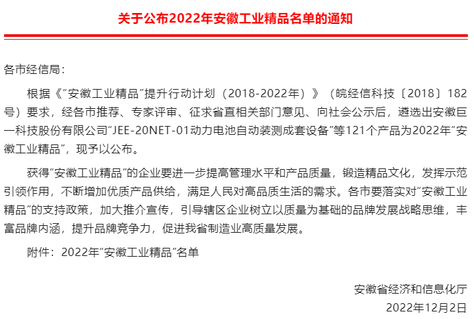 12月2日,安徽省经济和信息化厅发布《2022年“安徽工业精品”名单》,包括yd2333云顶电子游戏股份离子膜烧碱在内的121个产品位列其中。2022年,公司先后在国家、行业、省市县各类活动中摘得奖项20余项。(撰稿:陈春秋 审核:张朗)