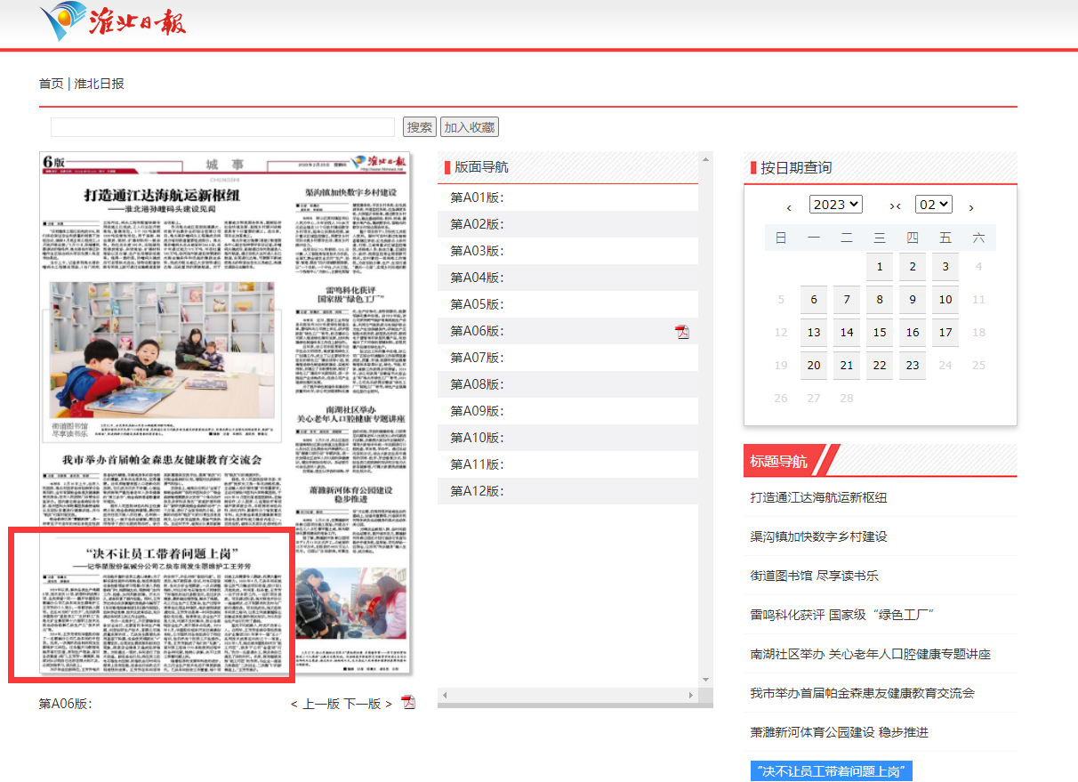 《淮北日报》2月23日六版:“决不让员工带着问题上岗”