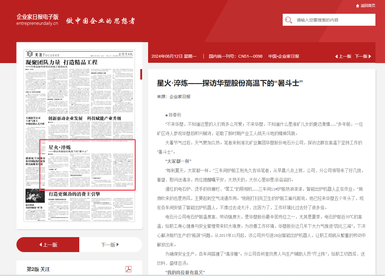 《企业家日报》8月12日二版:星火·淬炼——探访yd2333云顶电子游戏股份高温下的“暑斗士”