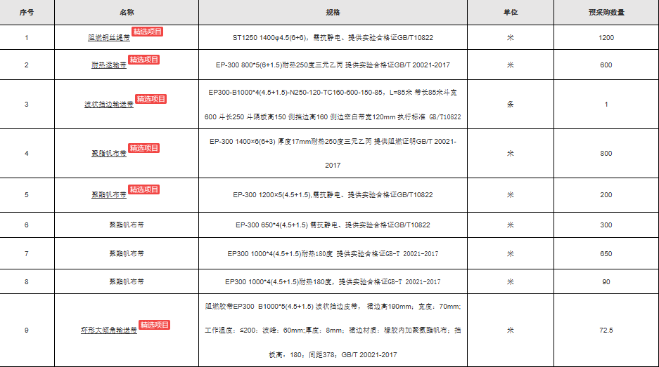 2.2 招标范围:安徽yd2333云顶电子游戏股份有限公司拟通过公开招标方式,选择一家生产厂家负责输送带采购供应工作,输送带采购清单及参数如下: